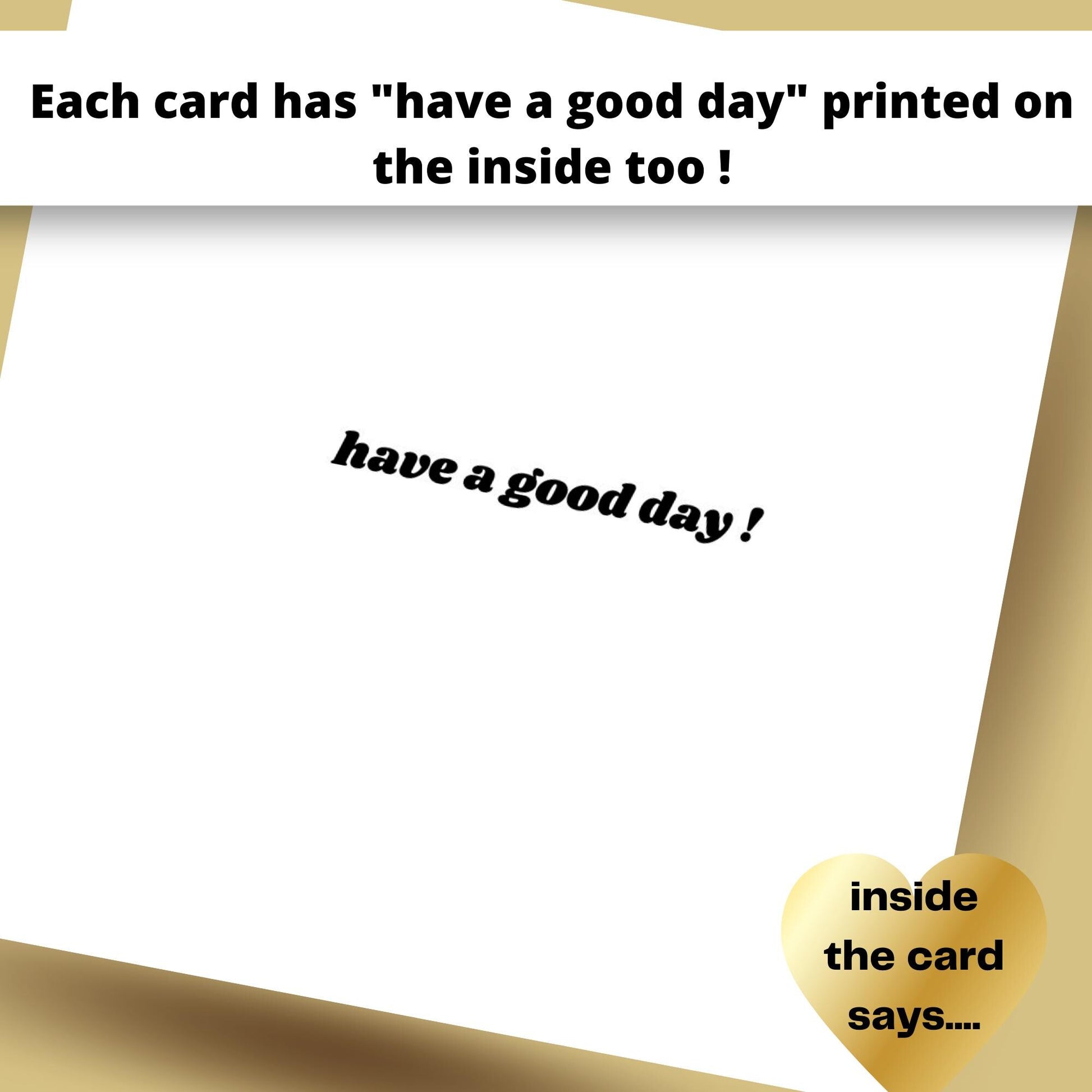 : Inside the card states Have a good day!